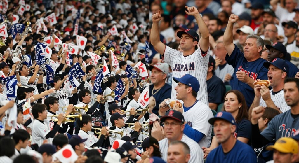 最後に、スタジアムの雰囲気を全く異なるものにしている「応援文化」の違いを見ていきましょう。ここにこそ、日米の国民性やスポーツの楽しみ方の違いが、最も色濃く表れています。